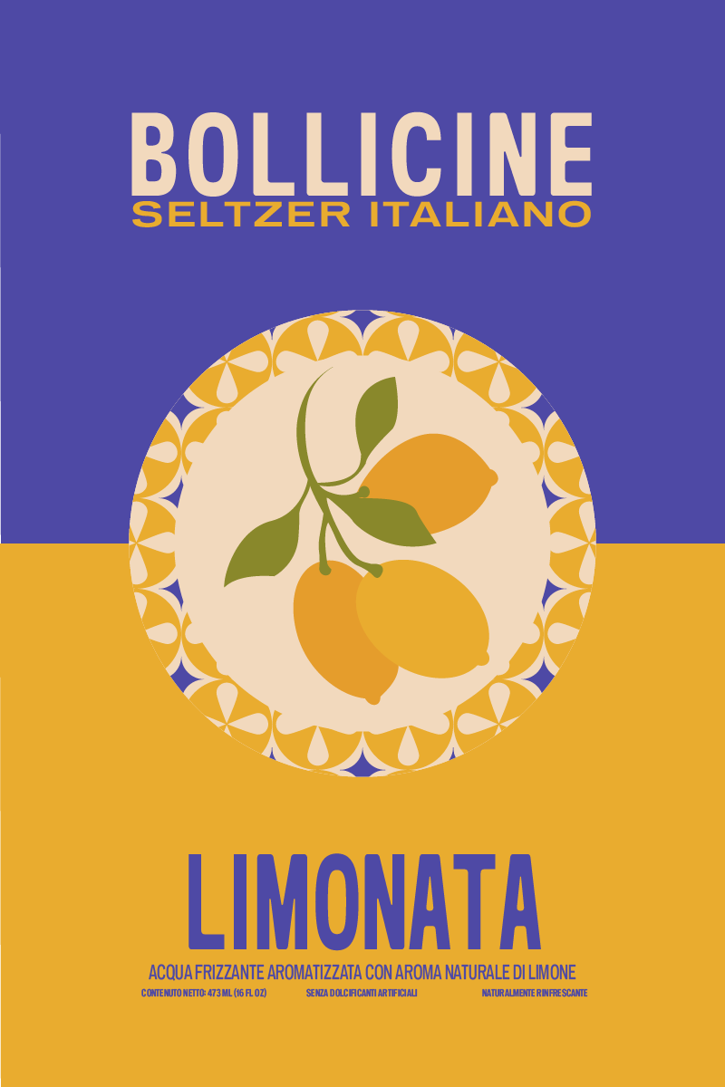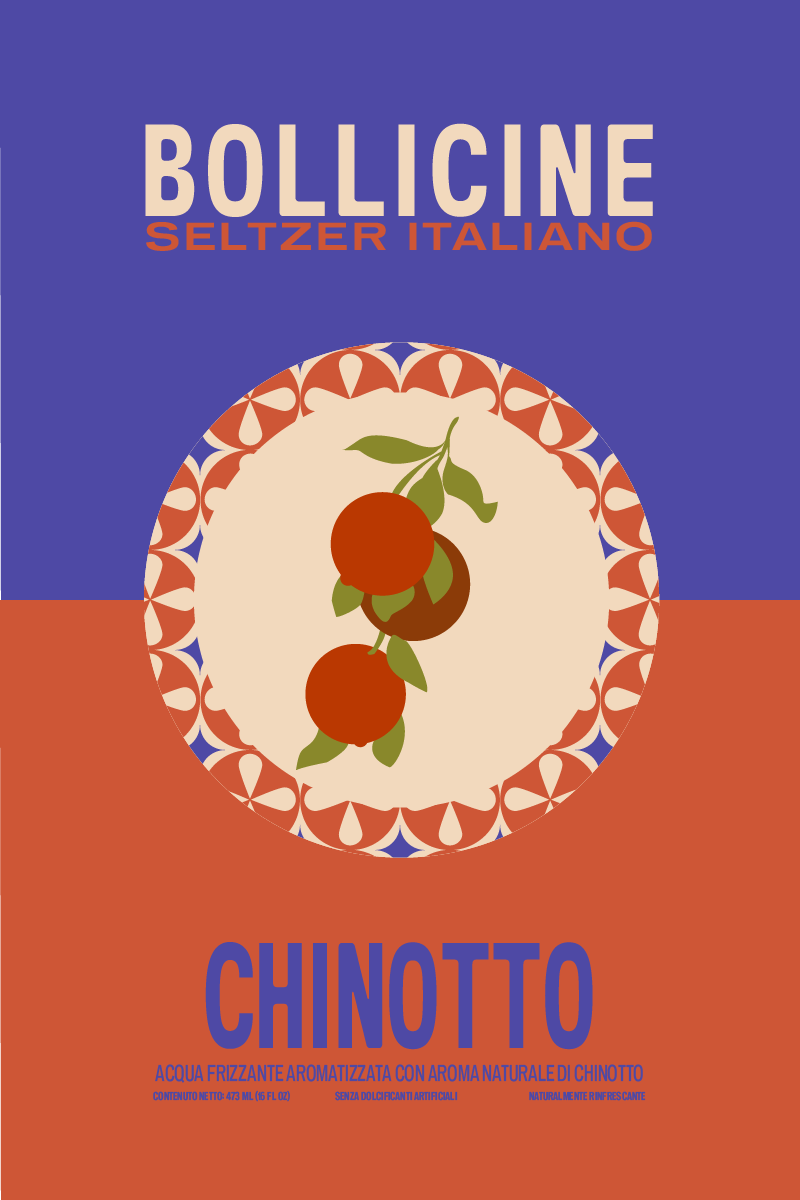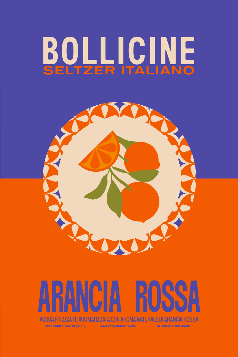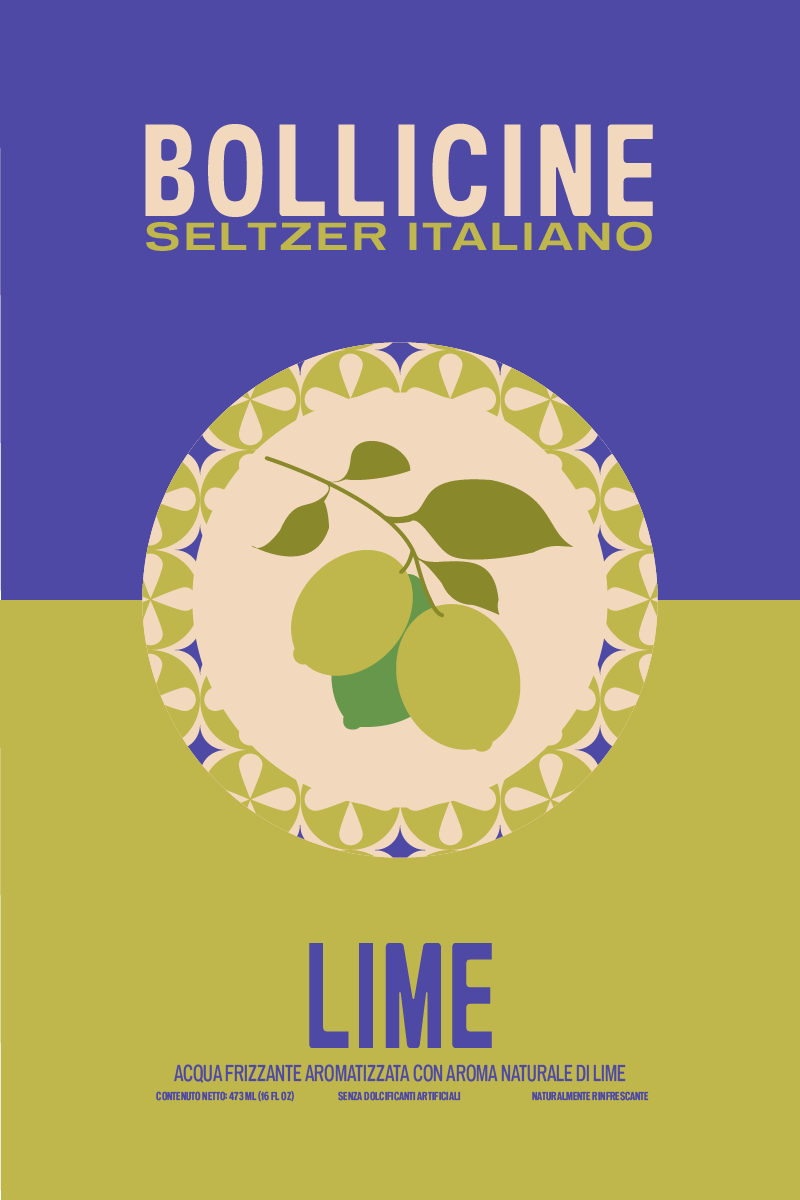 Beverage packaging rooted in Italian seltzer culture. The design leans into minimalism as a form of personality, allowing the product to speak for itself among a wide variety of flavors.