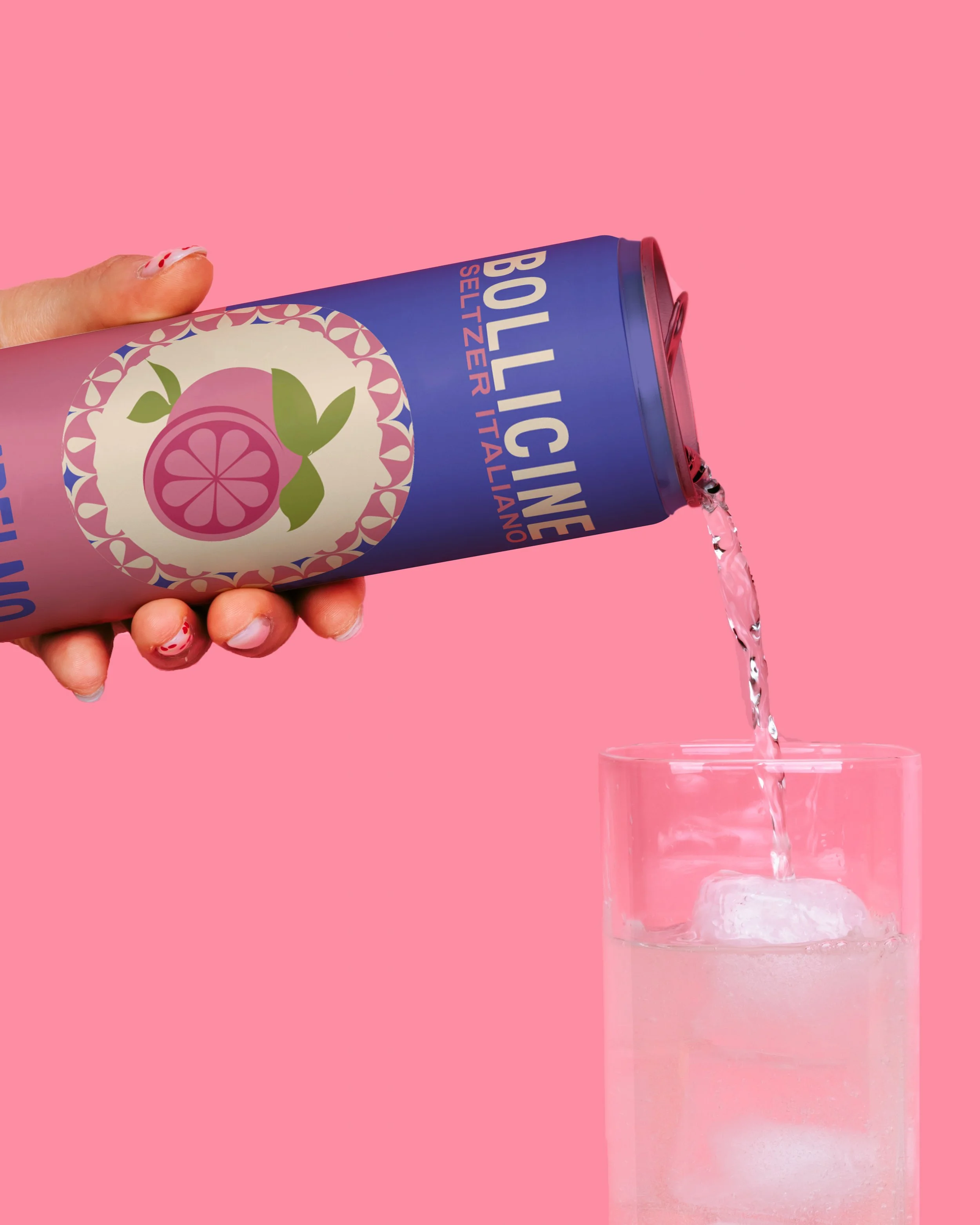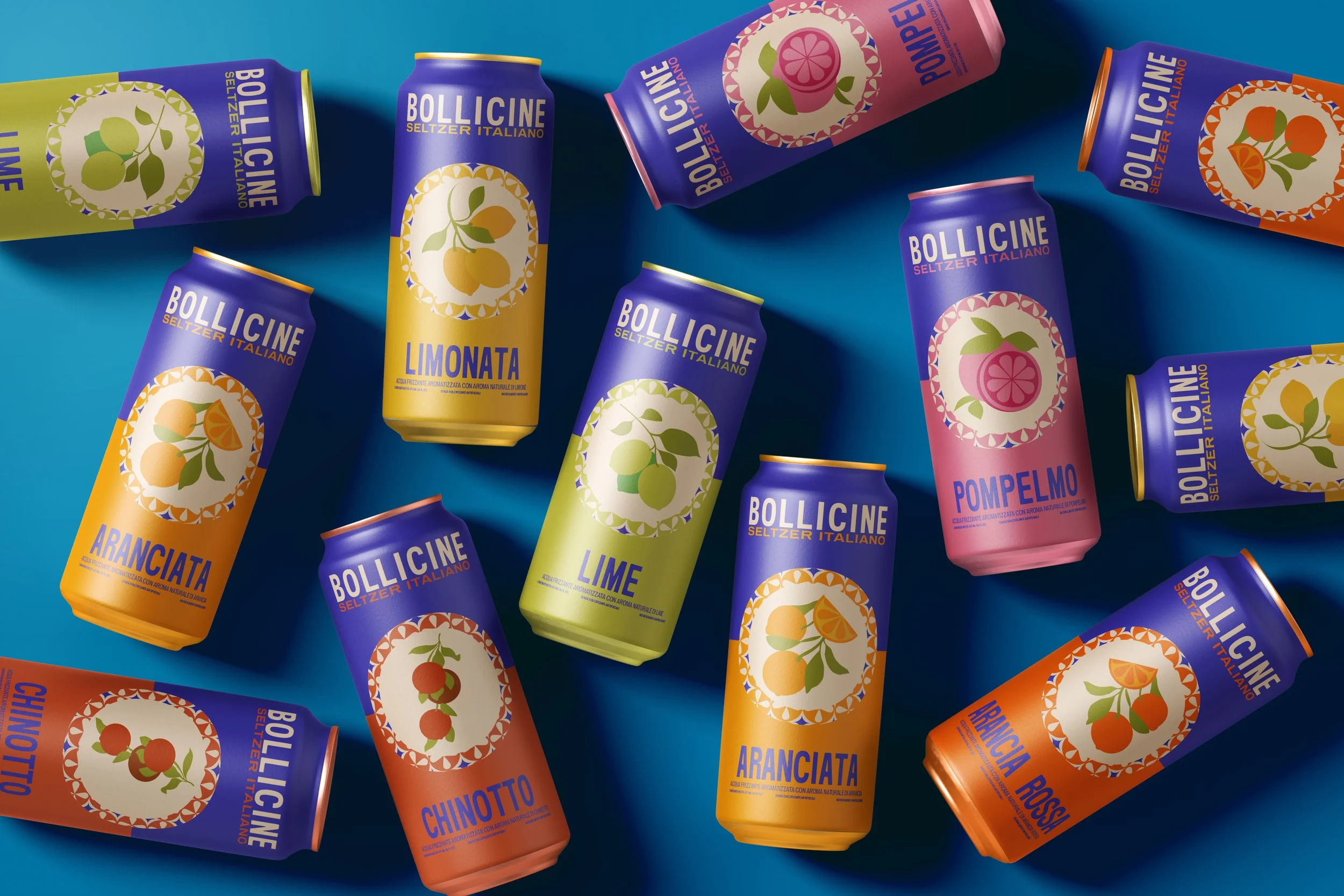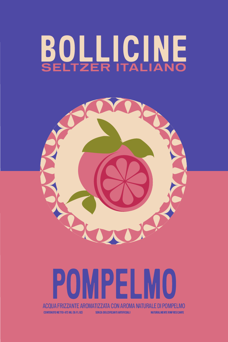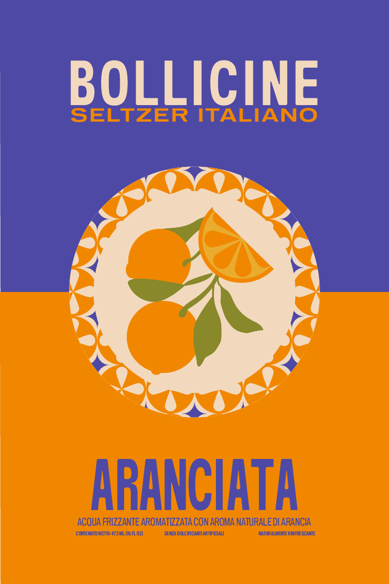 Beverage packaging rooted in Italian seltzer culture. The design leans into minimalism as a form of personality, allowing the product to speak for itself among a wide variety of flavors.